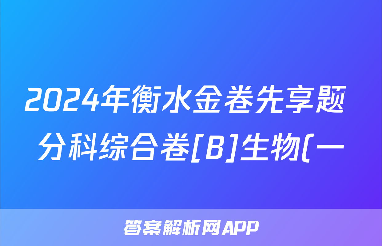 2024年衡水金卷先享题 分科综合卷[B]生物(一)1答案正在持续更新,目前全国100所名校单元测试示范卷答案网为大家整理了相关试题及答案,供大家查缺补漏,高效提升成绩。