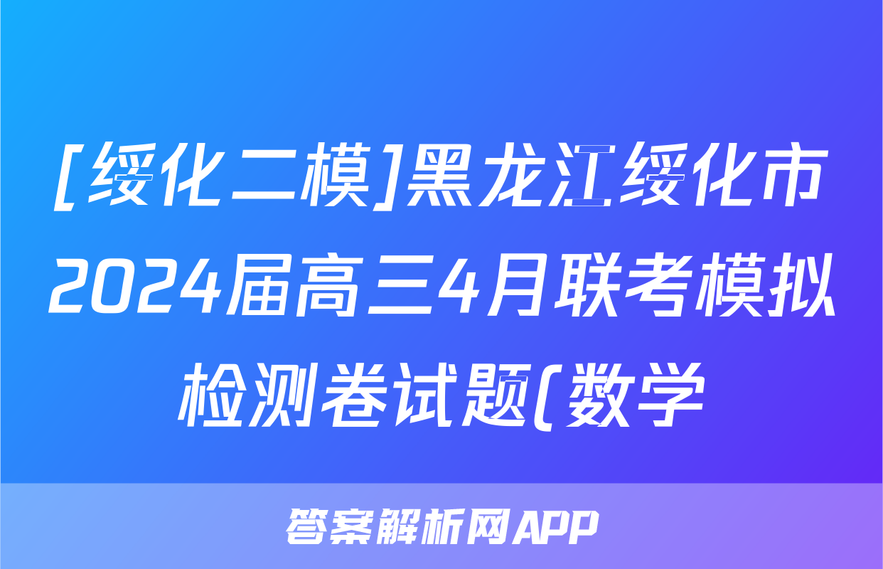 [绥化二模]黑龙江绥化市2024届高三4月联考模拟检测卷试题(数学)