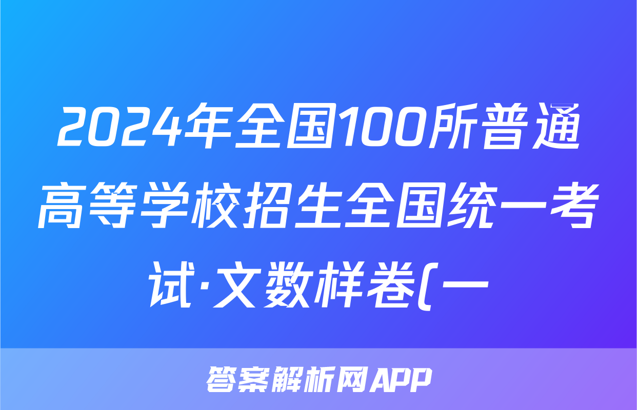 2024年全国100所普通高等学校招生全国统一考试·文数样卷(一)1[24·(新高考)高考样卷·文数·Y]答案正在持续更新,目前全国100所名校单元测试示范卷答案网为大家整理了相关试题及答案,供大家查缺补漏,高效提升成绩。