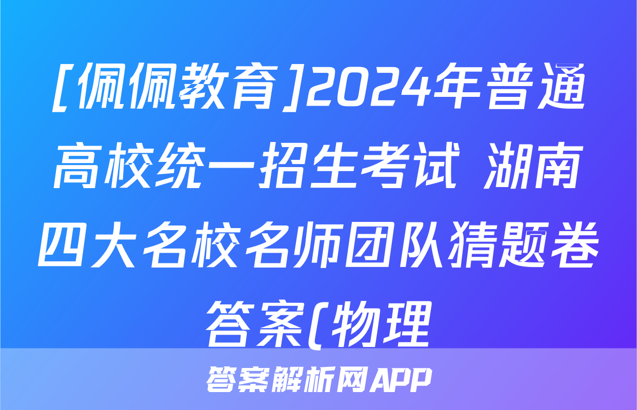 [佩佩教育]2024年普通高校统一招生考试 湖南四大名校名师团队猜题卷答案(物理)正在持续更新,目前全国100所名校单元测试示范卷答案网为大家整理了相关试题及答案,供大家查缺补漏,高效提升成绩。