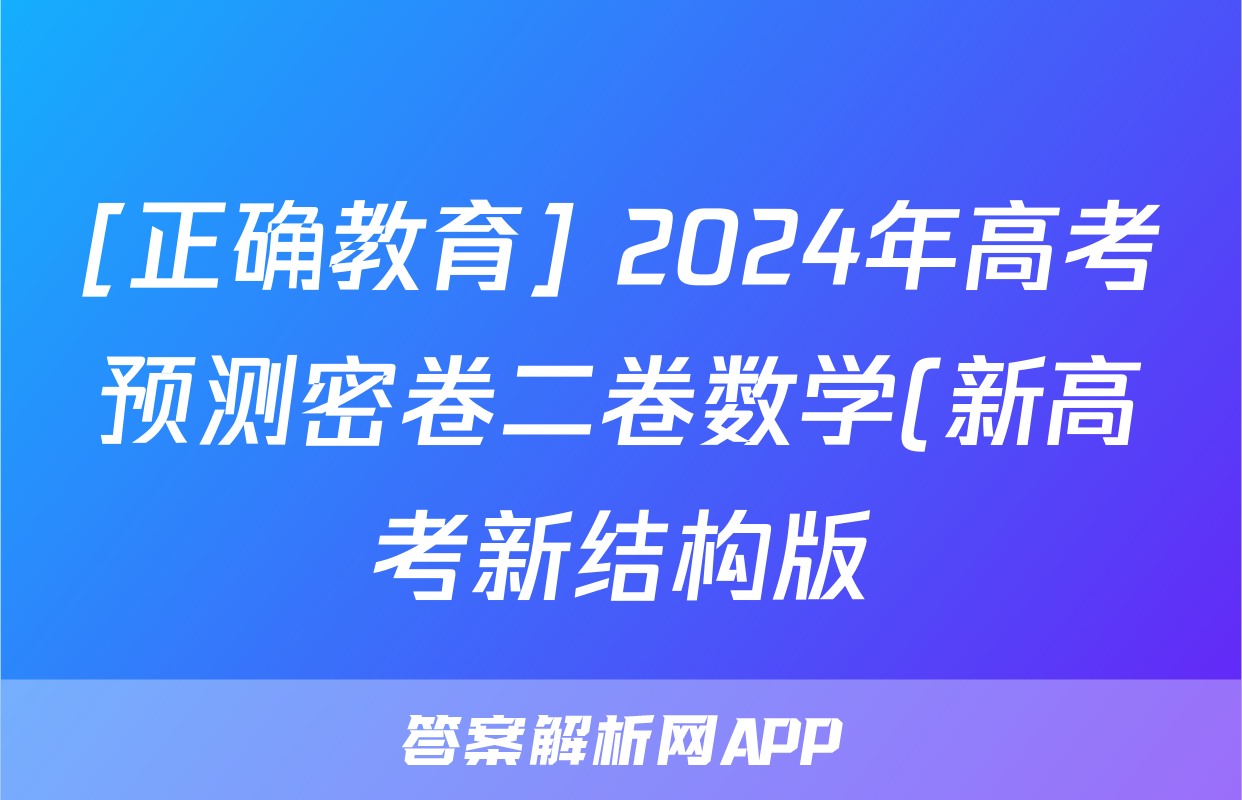 [正确教育] 2024年高考预测密卷二卷数学(新高考新结构版)试题正在持续更新,目前全国100所名校单元测试示范卷答案网为大家整理了相关试题及答案,供大家查缺补漏,高效提升成绩。