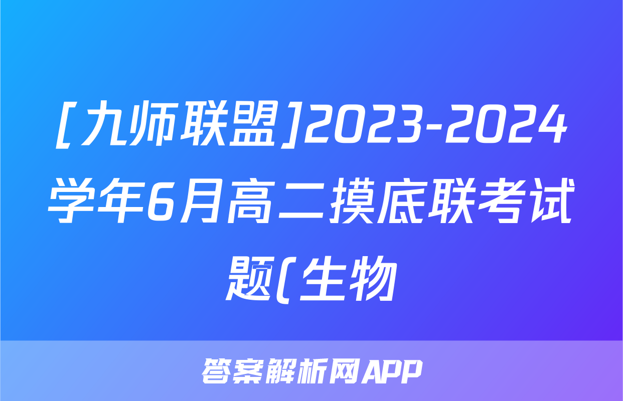 [九师联盟]2023-2024学年6月高二摸底联考试题(生物)正在持续更新,目前全国100所名校单元测试示范卷答案网为大家整理了相关试题及答案,供大家查缺补漏,高效提升成绩。