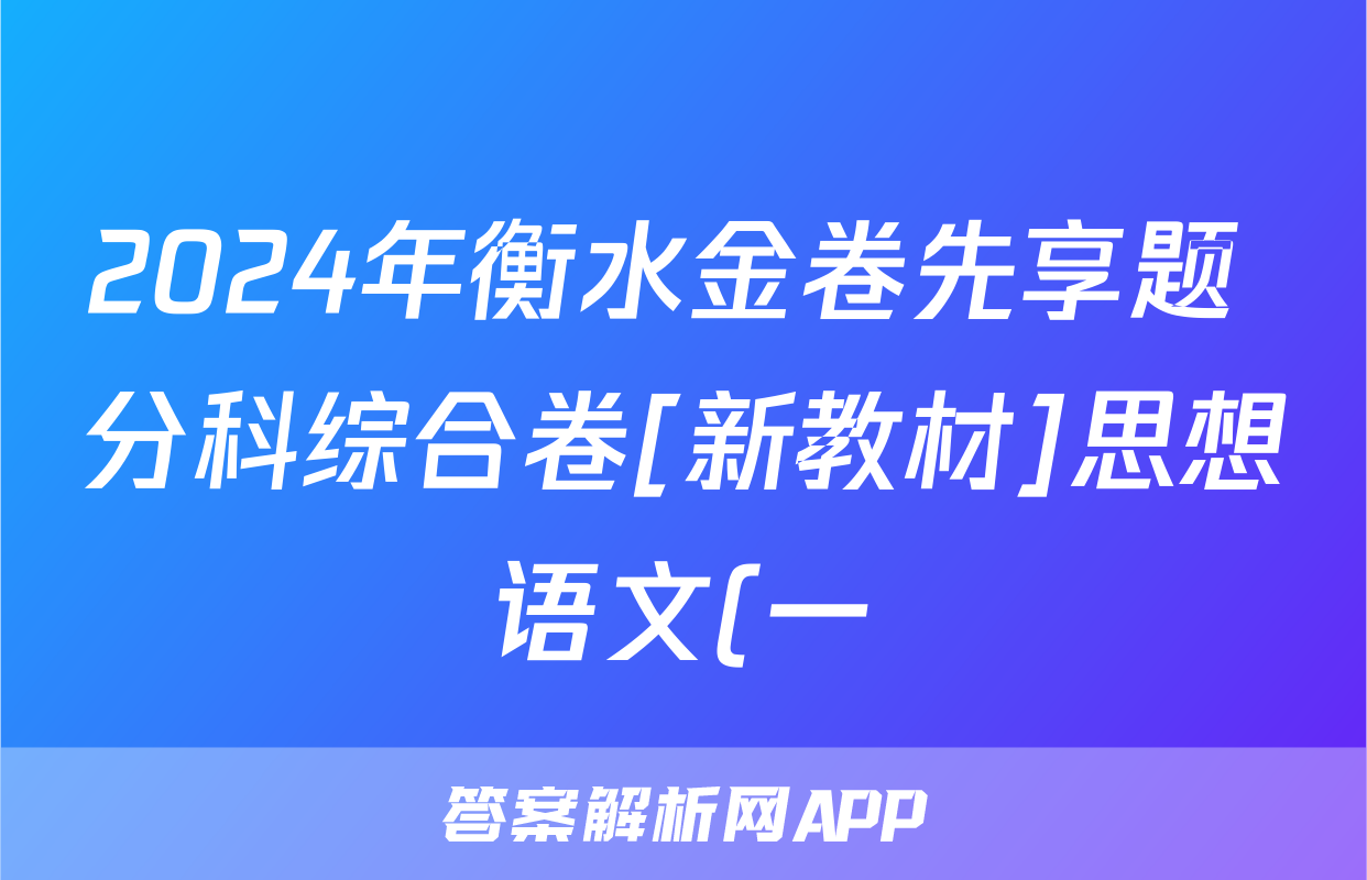2024年衡水金卷先享题 分科综合卷[新教材]思想语文(一)1试题正在持续更新,目前全国100所名校单元测试示范卷答案网为大家整理了相关试题及答案,供大家查缺补漏,高效提升成绩。