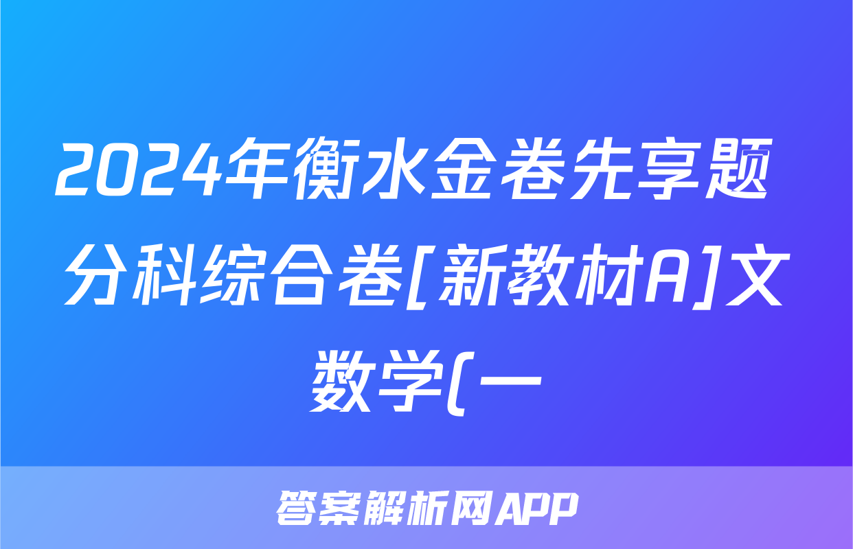 2024年衡水金卷先享题 分科综合卷[新教材A]文数学(一)1试题正在持续更新,目前全国100所名校单元测试示范卷答案网为大家整理了相关试题及答案,供大家查缺补漏,高效提升成绩。