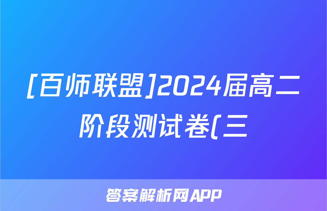 [百师联盟]2024届高二阶段测试卷(三)3化学(新教材75分钟)试题正在持续更新,目前全国100所名校单元测试示范卷答案网为大家整理了相关试题及答案,供大家查缺补漏,高效提升成绩。