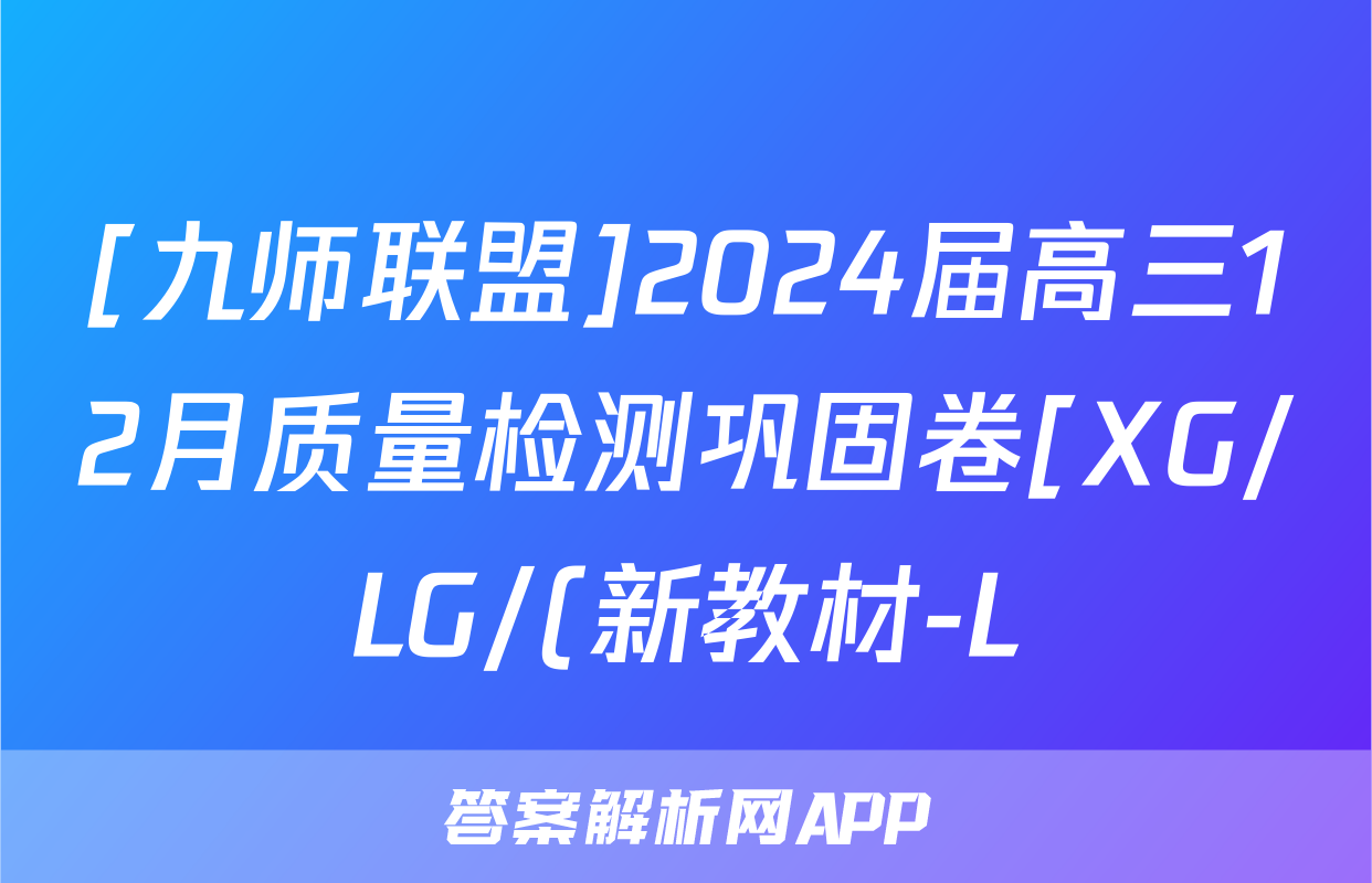 [九师联盟]2024届高三12月质量检测巩固卷[XG/LG/(新教材-L)G]历史XG试题