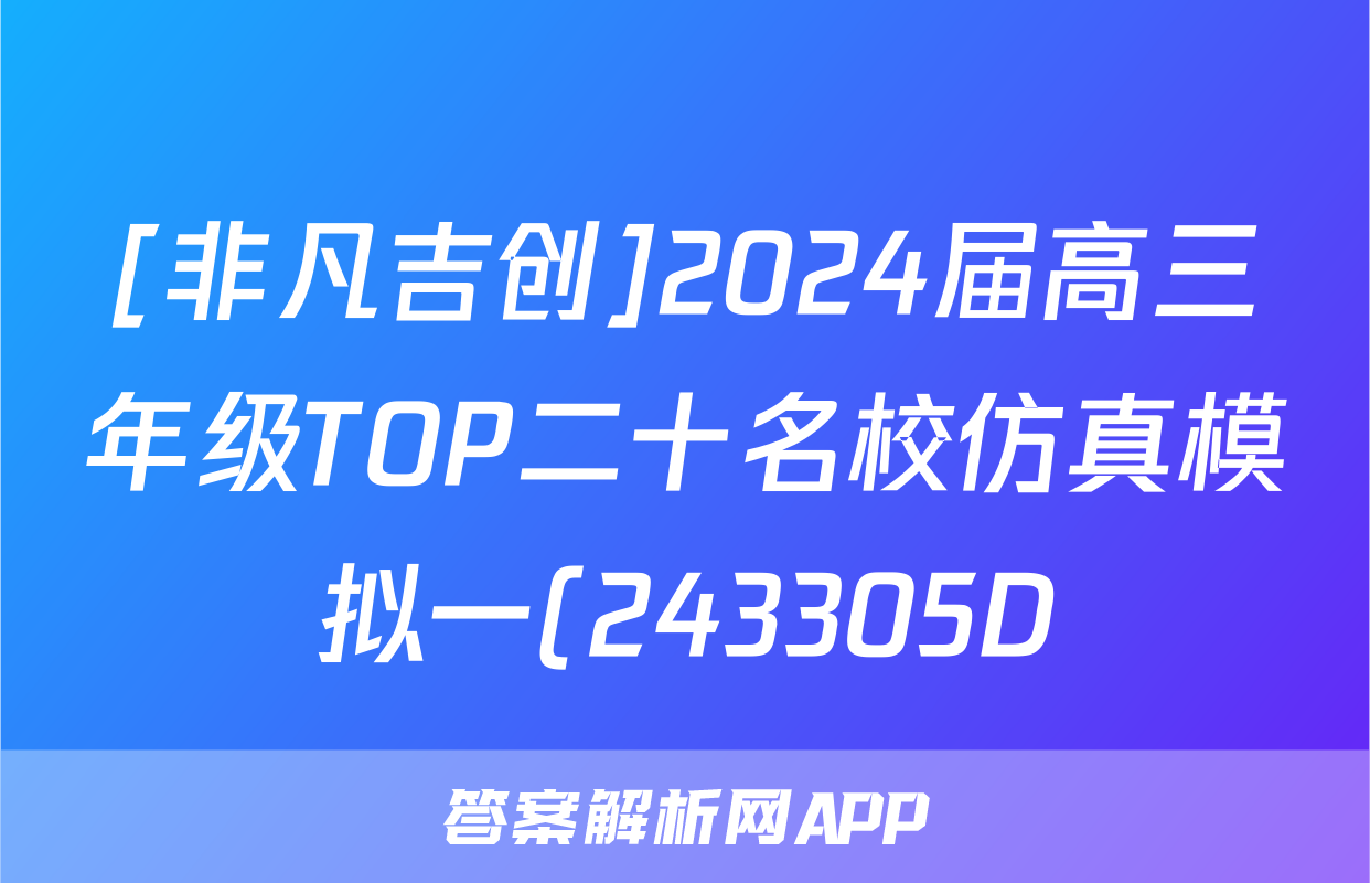 [非凡吉创]2024届高三年级TOP二十名校仿真模拟一(243305D)地理试题正在持续更新,目前全国100所名校单元测试示范卷答案网为大家整理了相关试题及答案,供大家查缺补漏,高效提升成绩。