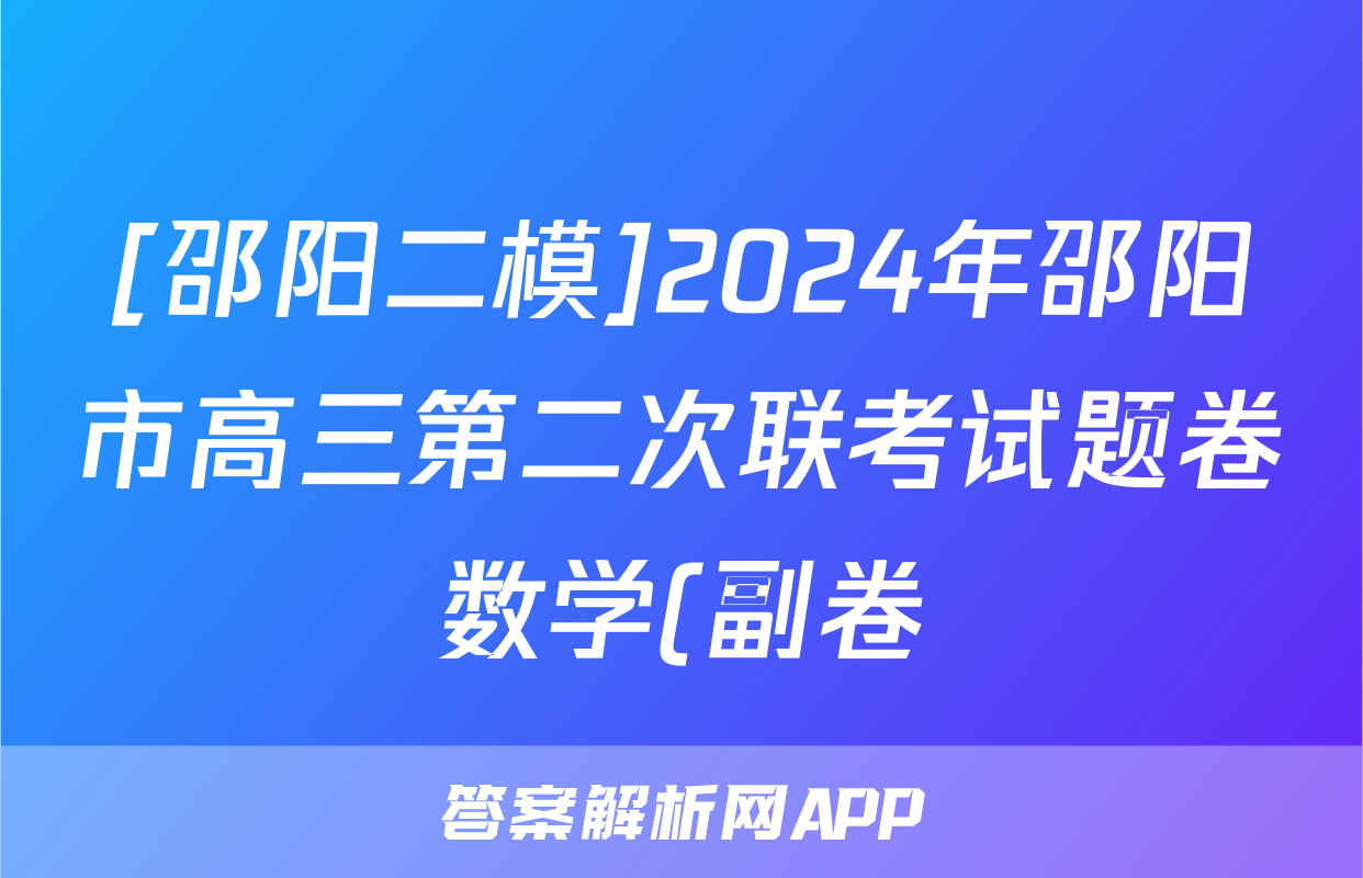 [邵阳二模]2024年邵阳市高三第二次联考试题卷数学(副卷)答案正在持续更新,目前全国100所名校单元测试示范卷答案网为大家整理了相关试题及答案,供大家查缺补漏,高效提升成绩。