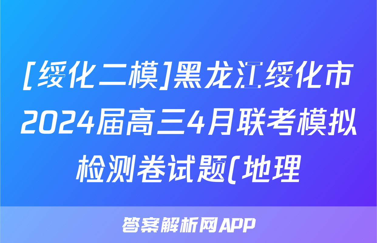 [绥化二模]黑龙江绥化市2024届高三4月联考模拟检测卷试题(地理)正在持续更新,目前全国100所名校单元测试示范卷答案网为大家整理了相关试题及答案,供大家查缺补漏,高效提升成绩。