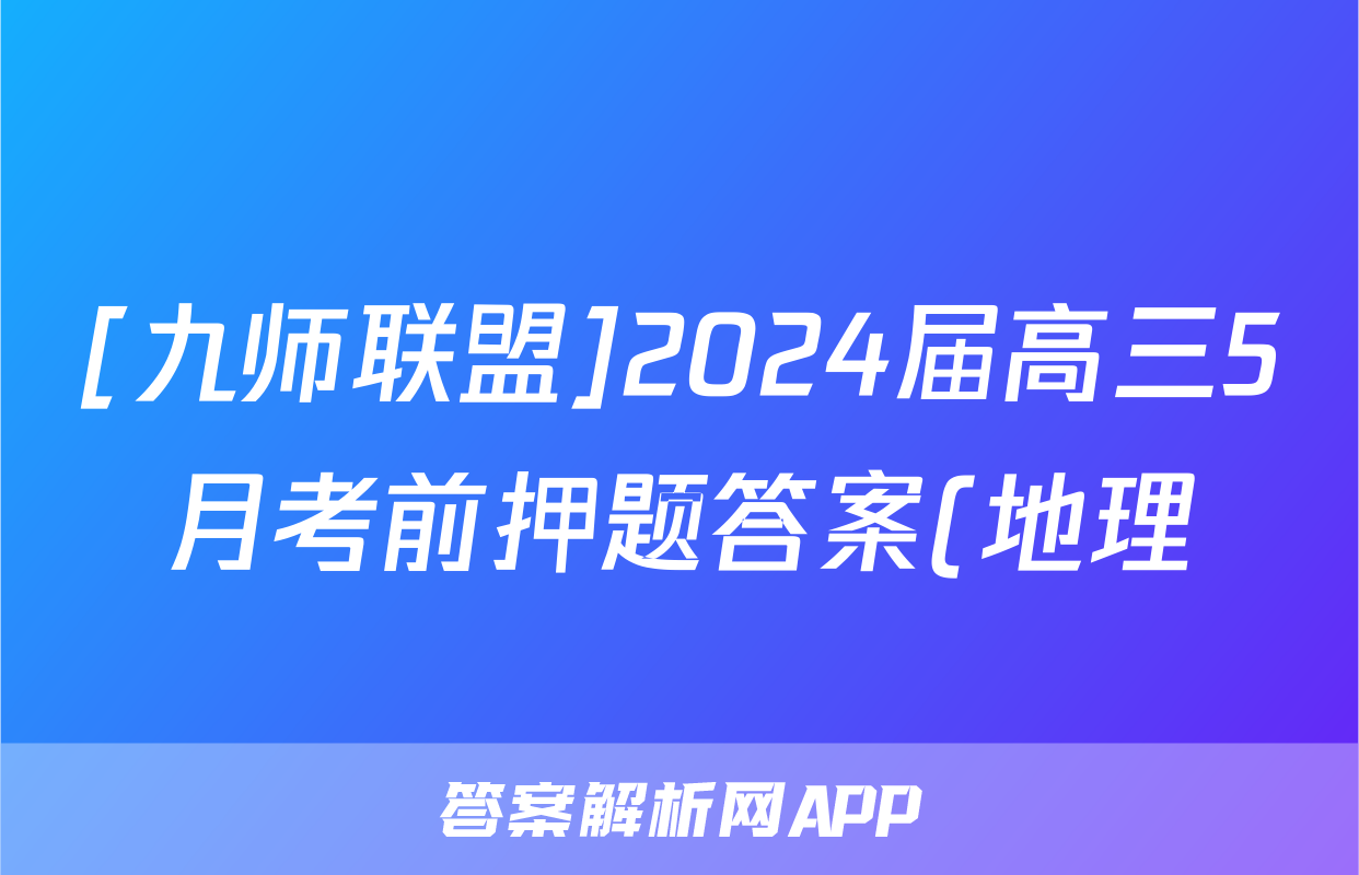 [九师联盟]2024届高三5月考前押题答案(地理)正在持续更新,目前全国100所名校单元测试示范卷答案网为大家整理了相关试题及答案,供大家查缺补漏,高效提升成绩。