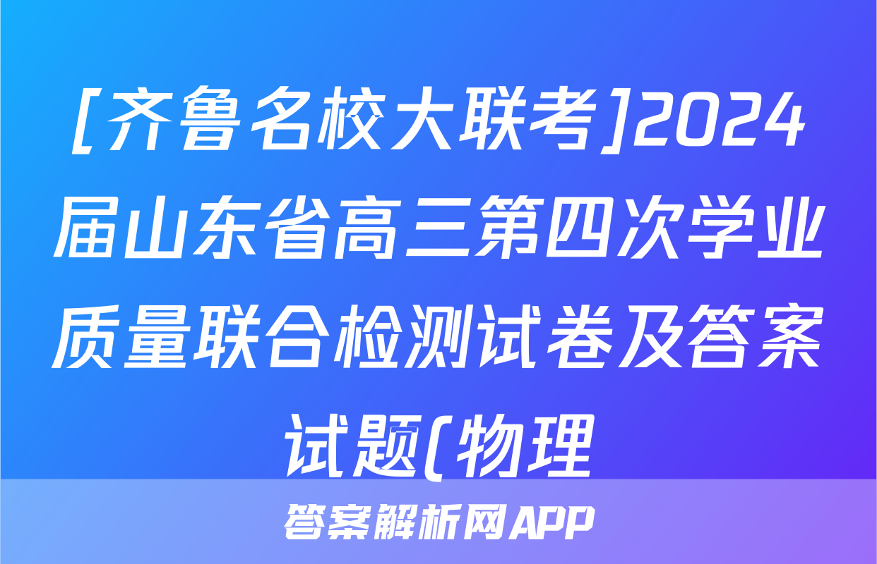 [齐鲁名校大联考]2024届山东省高三第四次学业质量联合检测试卷及答案试题(物理)正在持续更新,目前全国100所名校单元测试示范卷答案网为大家整理了相关试题及答案,供大家查缺补漏,高效提升成绩。