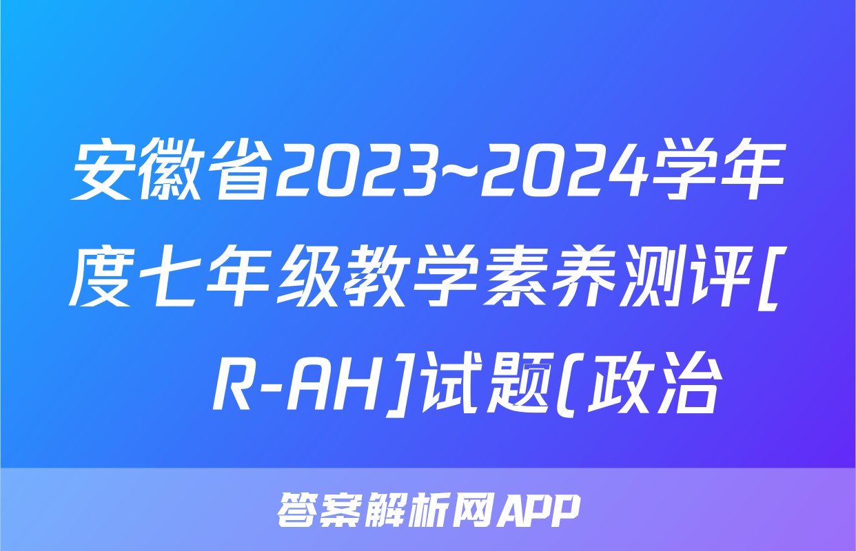 安徽省2023~2024学年度七年级教学素养测评[☐R-AH]试题(政治)正在持续更新,目前全国100所名校单元测试示范卷答案网为大家整理了相关试题及答案,供大家查缺补漏,高效提升成绩。